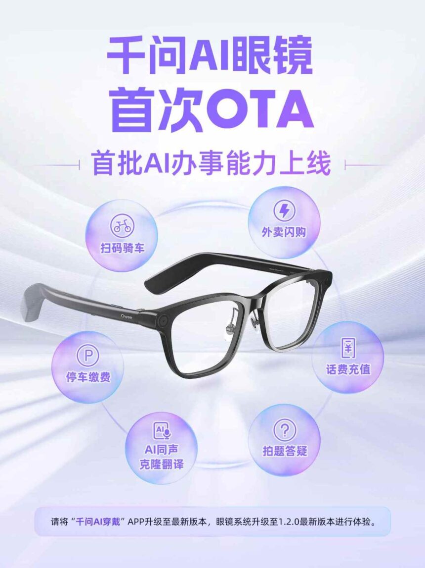 under the Qwen brand. This OTA update covers both the Qwen AI Glasses G1 and the